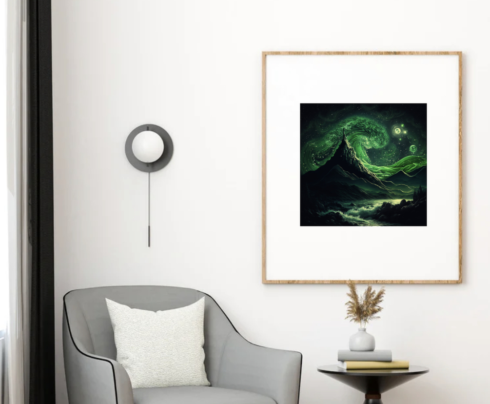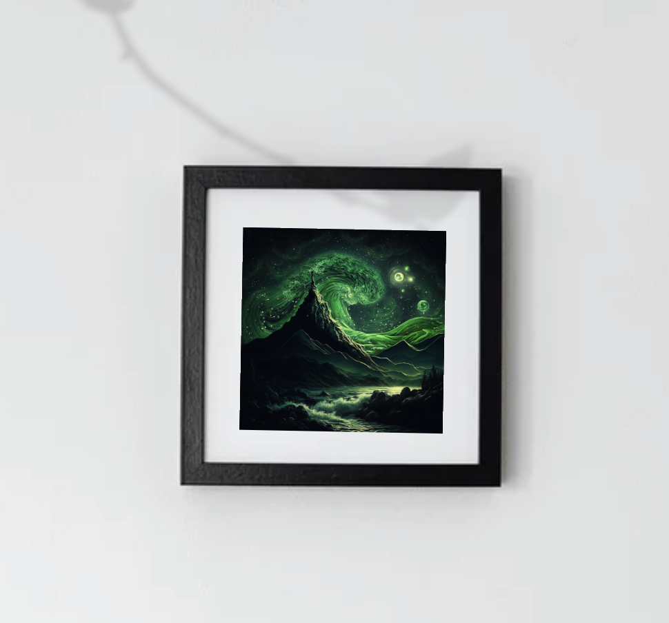 Digital Painting - Green Starry Night" is a digital download of a stunning digital painting featuring a starry night sky with shades of green as the dominant color. The artwork captures the serene beauty of the night sky and is perfect for adding a touch of nature to any room or office. This high-resolution digital painting can be printed and framed to create a unique and beautiful piece of art that is sure to impress. With a digital download, you can easily access and display the painting on your computer, tablet, or phone.